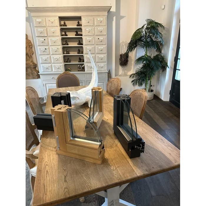 La série sophistiquée de fenêtres en bois profilé 68, avec une ligne de profilé enrichie donnant aux fenêtres un aspect unique et subtil. La série permet l'utilisation dans des bâtiments nécessitant un traitement individuel et des solutions non conventionnelles. Les fraisages décoratifs des bords extérieurs des ouvrants et des parcloses donnent aux fenêtres un caractère extrêmement élégant, soulignant le caractère rustique des bâtiments à l'architecture élégante.